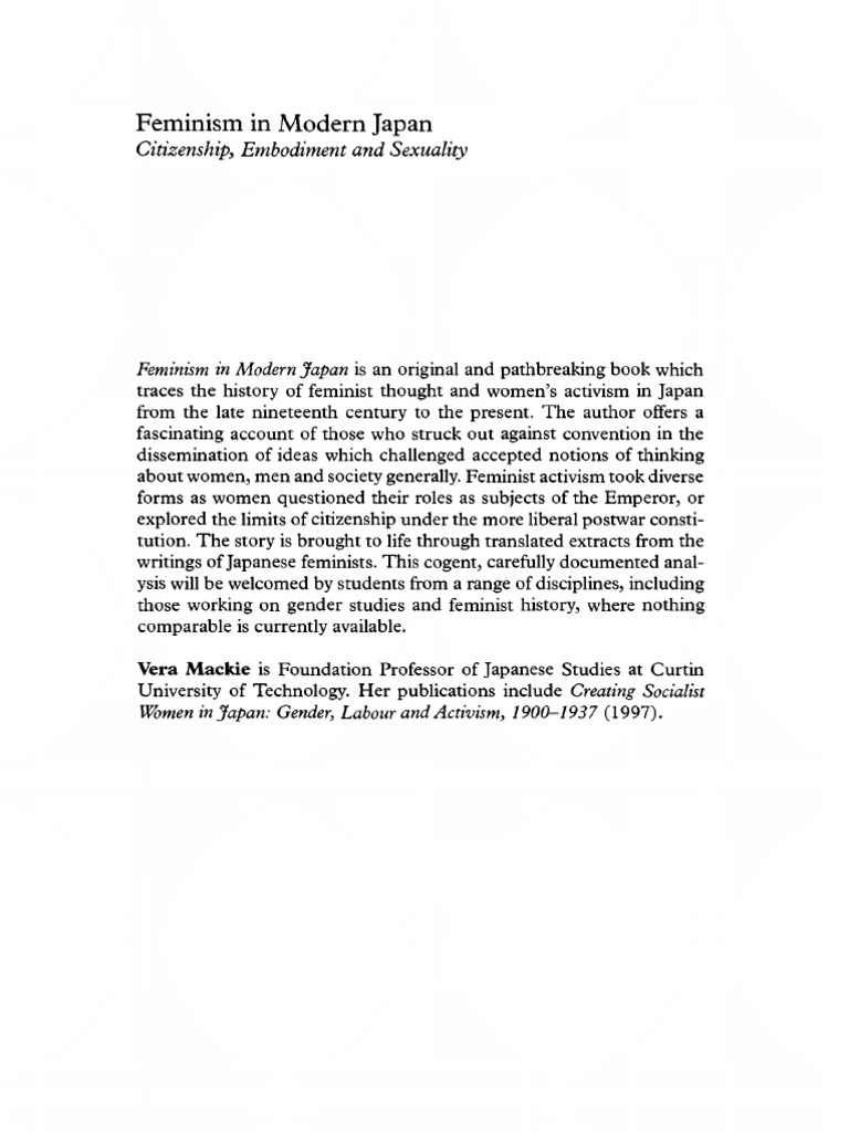 Feminism In Modern Japan Citizenship Embodiment And Sexuality