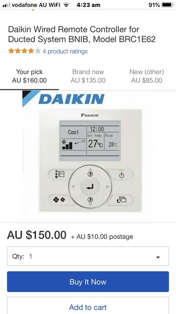 Daikin Wired Remote Control Brc1e62 Air Conditioning